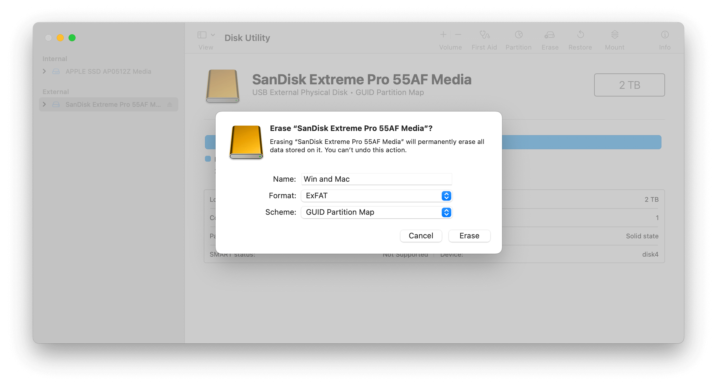 Disk Utility drive partition settings for cross-platform usage