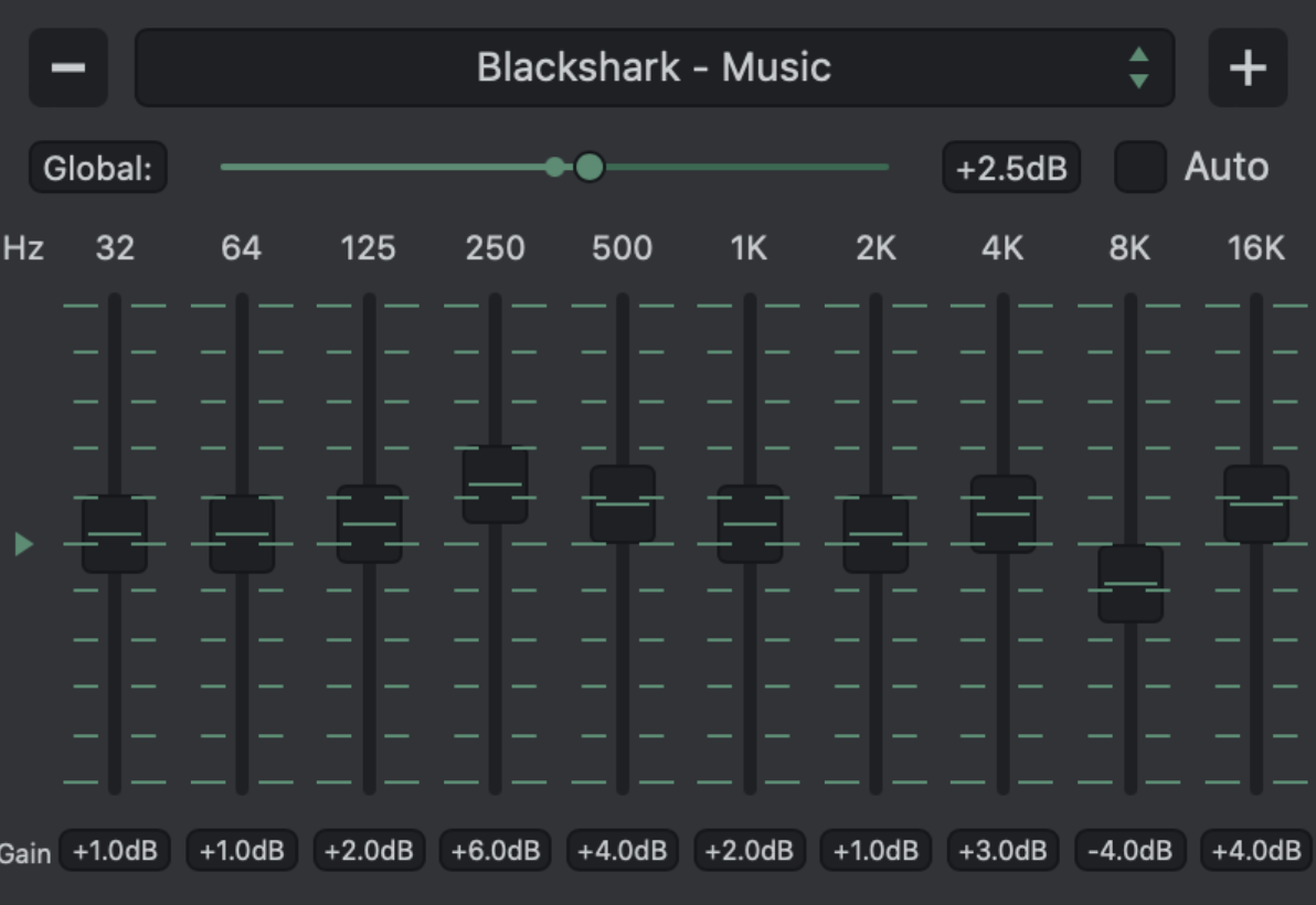 Use the following Equalizer settings with your Razer BlackShark V2 Pro for stunning audio experiences for different use cases. Overall I recommend tuning the Global Equalizer level up to around +2.5 dB.
