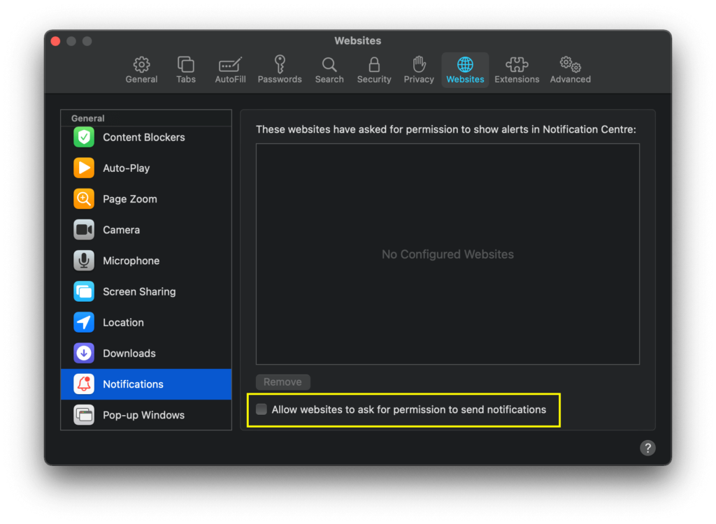 How to disable websites asking for notification permissions