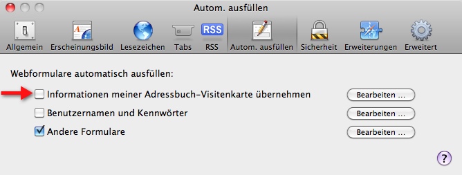 Es geht darum, dass in Apple’s Safari Version 4 und 5 standardmässig eine Option aktiviert ist, dass Forumlarfelder automatisch mit den Daten meiner persönlichen Adressbuch-Visitenkarte ausgefüllt werden können.